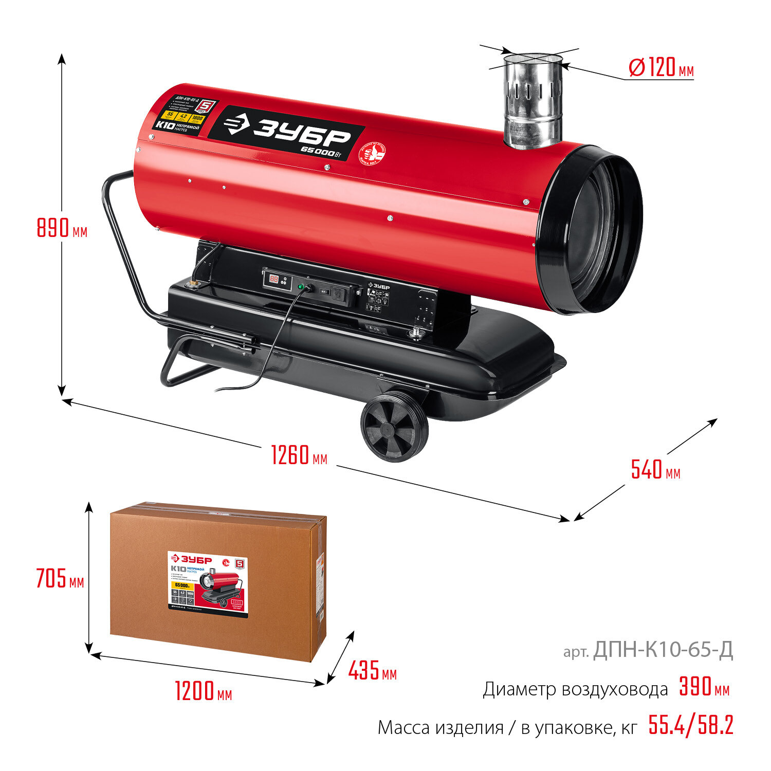 Пушка дизельная тепловая, ЗУБР ДПН- К10-65- Д, 65 кВт, непрямой нагрев