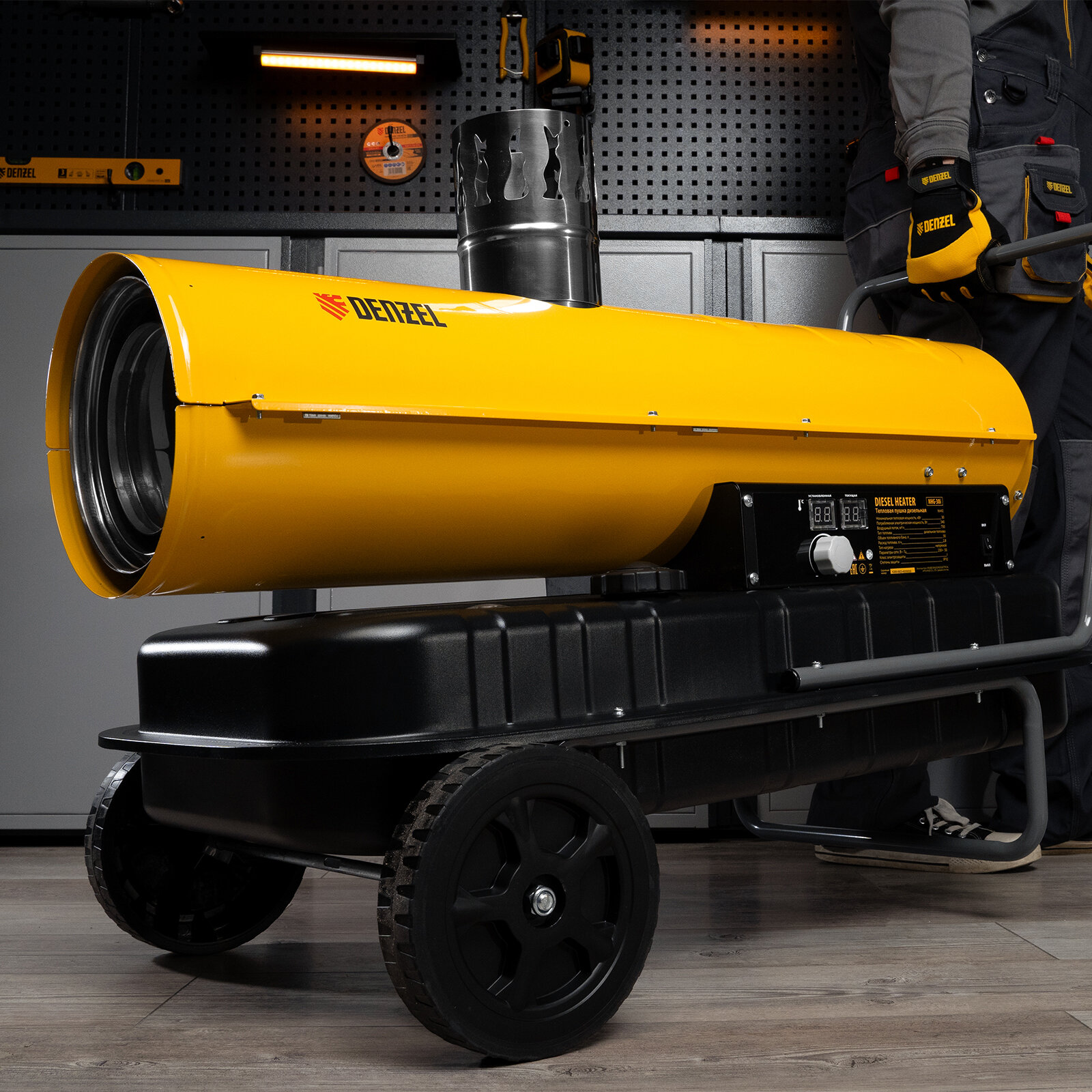 Дизельная тепловая пушка Denzel NHG-20i, 20 кВт, 600 м3/ч, непрямой нагрев, цифровой термостат 96491