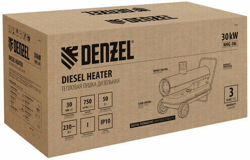 Дизельная тепловая пушка DENZEL NHG-30i, 30 кВт, 750 м3/ч, непрямой нагрев, цифровой термостат