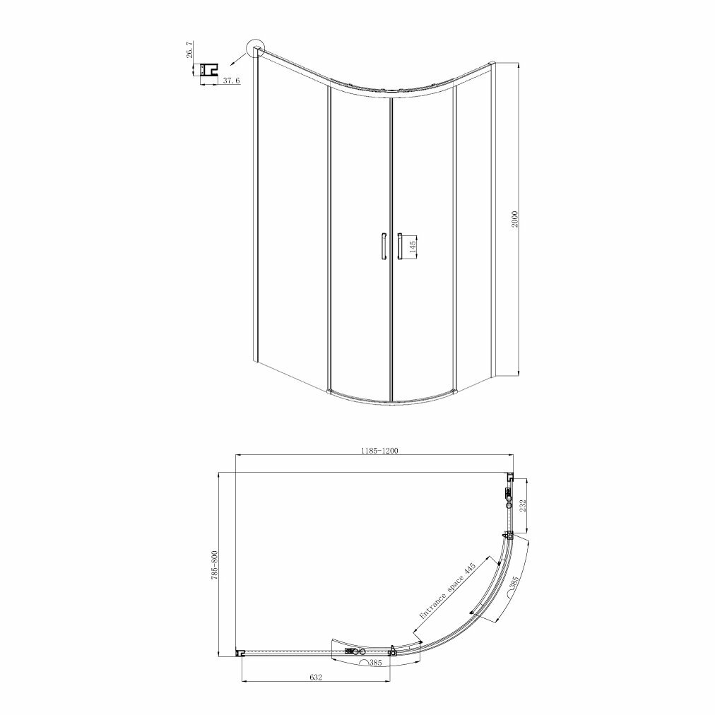 Душевой уголок Black&White Stellar Wind S101 800х800