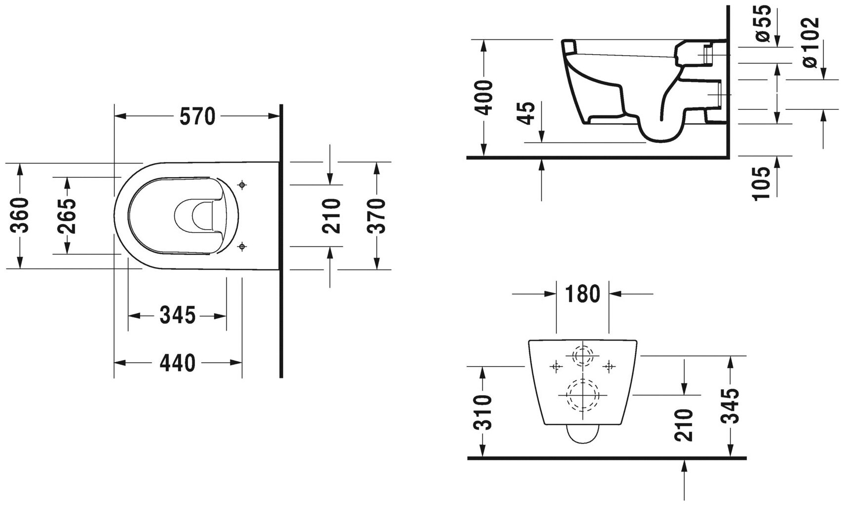 Унитаз, Duravit, ME by Starck, подвесной, шгв 370*570*355, цвет-белый