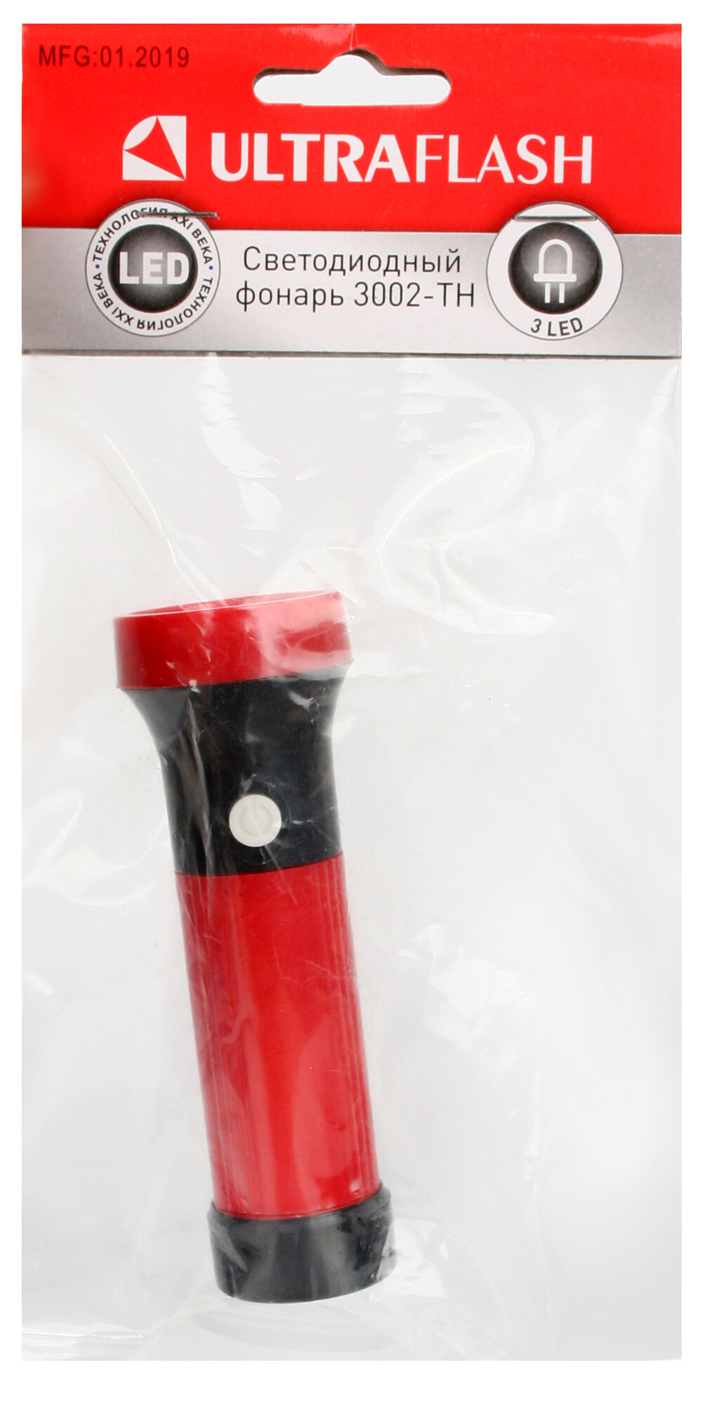 Фонарь 3002-ТН (3LED 1 режим 3XR03; блист-пакет; красн.), ULTRAFLASH 11783 (6 шт.)