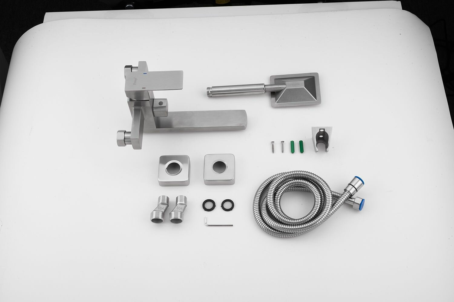 Смеситель для ванны с душевой лейкой нержавеющая сталь Frap F32802, сатин, короткий излив
