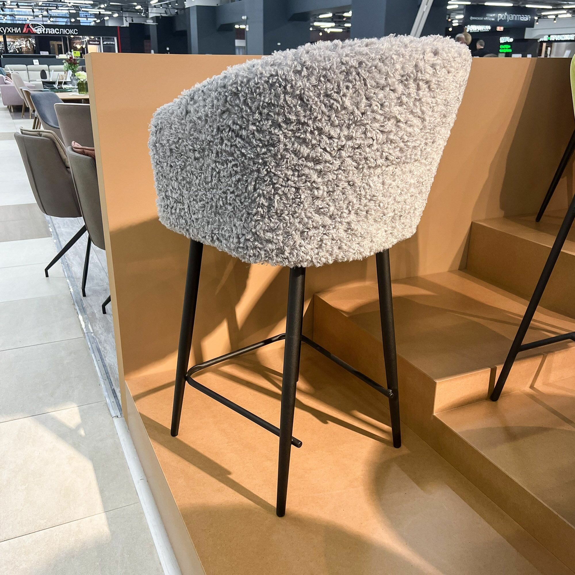 Стул полубарный Гарда серый бархат ножки черные для дома/для гостиной/для столовой/для кафе/кухонный стул/стул кухонный