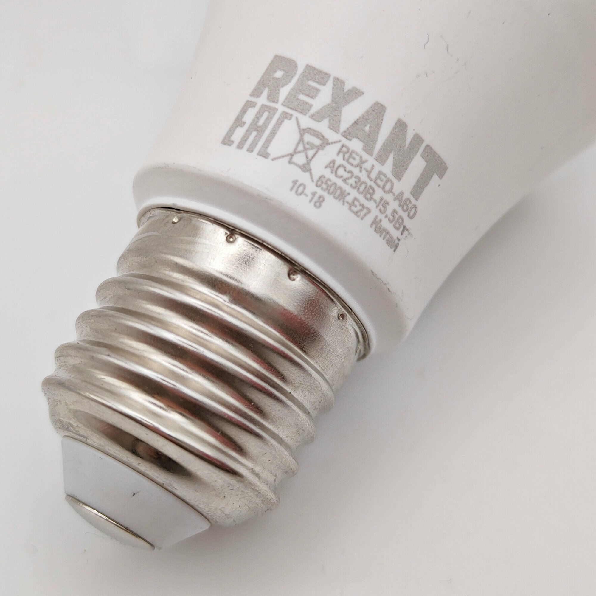 Светодиодная лампа Rexant Груша E27, 15.5 Вт, A60, 1473 Лм (=110 Вт), 6500 K (холодный свет), упаков