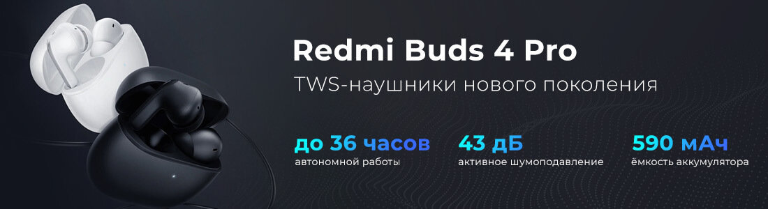 СохранитьБеспроводные наушники Xiaomi Redmi Buds 4 Pro Global для РФ, USB Type-C, черный интересное: