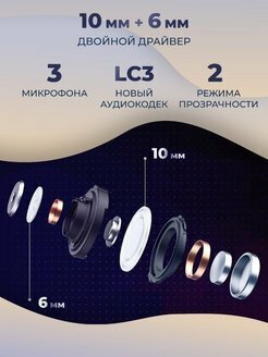 | Функции | Multipoint / Talk through (режим прозрачности) / объемный звук / поиск наушников |