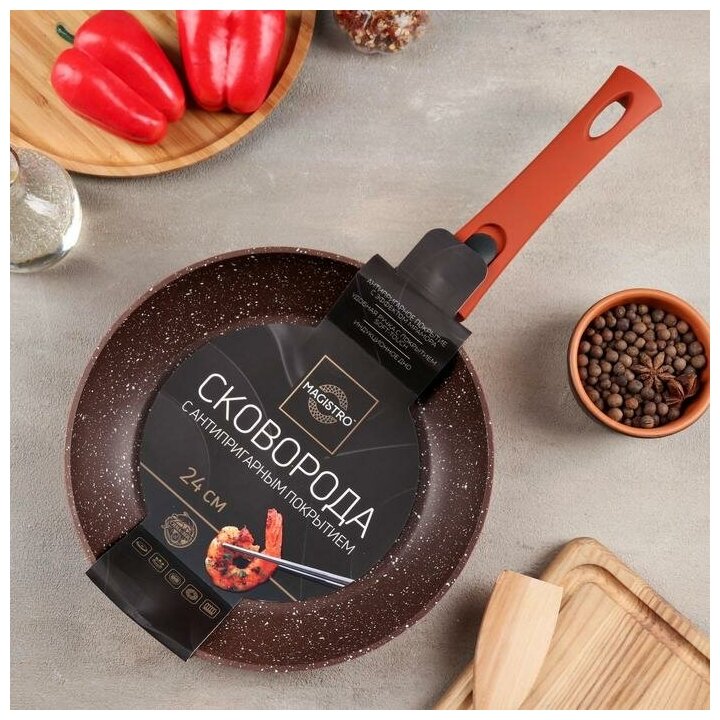 Magistro Сковорода Magistro Terra, d=26 см, съёмная ручка soft-touch, антипригарное покрытие, индукция, цвет оранжевый