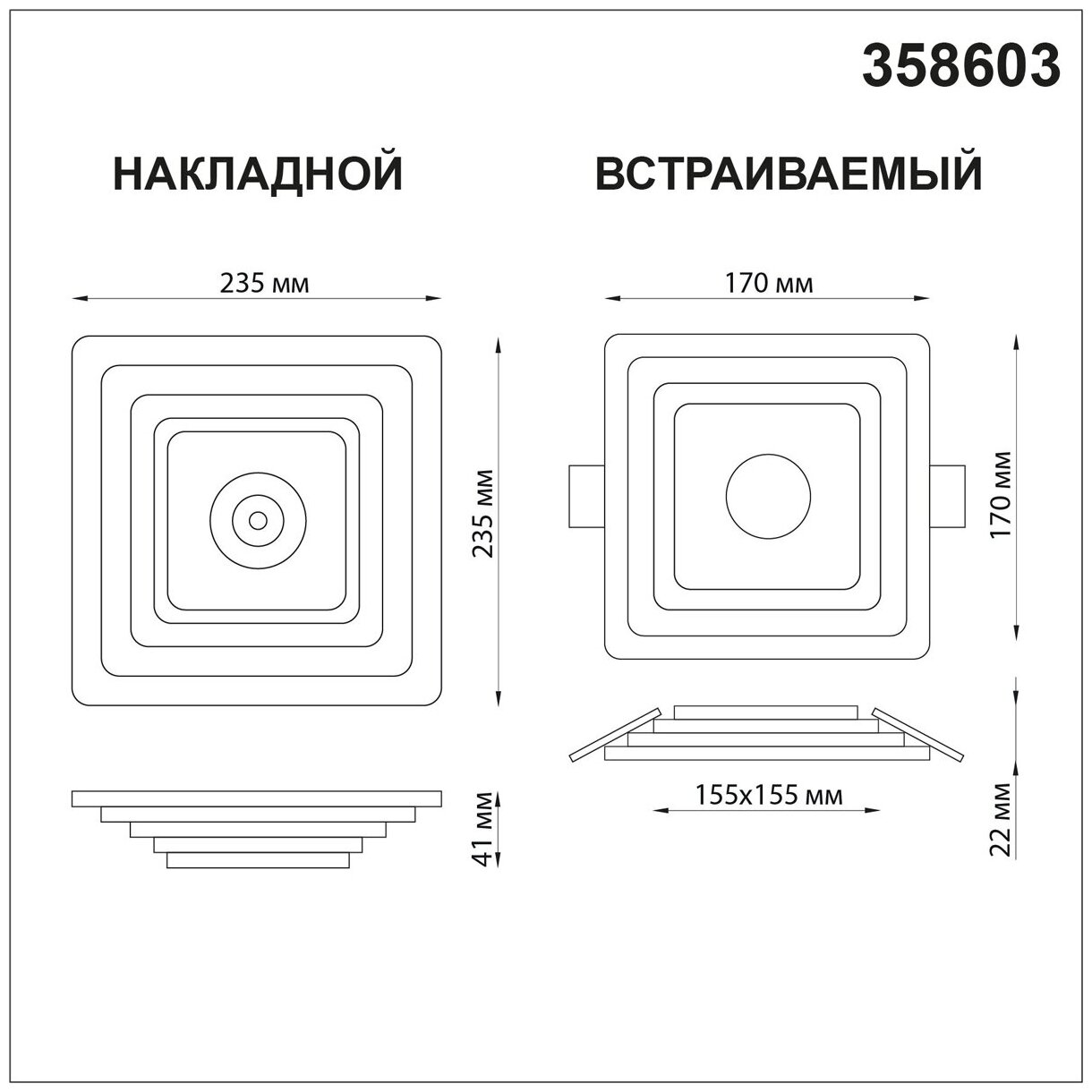 Светильник накладной/встраиваемый светодиодный NOVOTECH OVER TRIN 358603, 22Вт, 4000к, IP20 интересное: