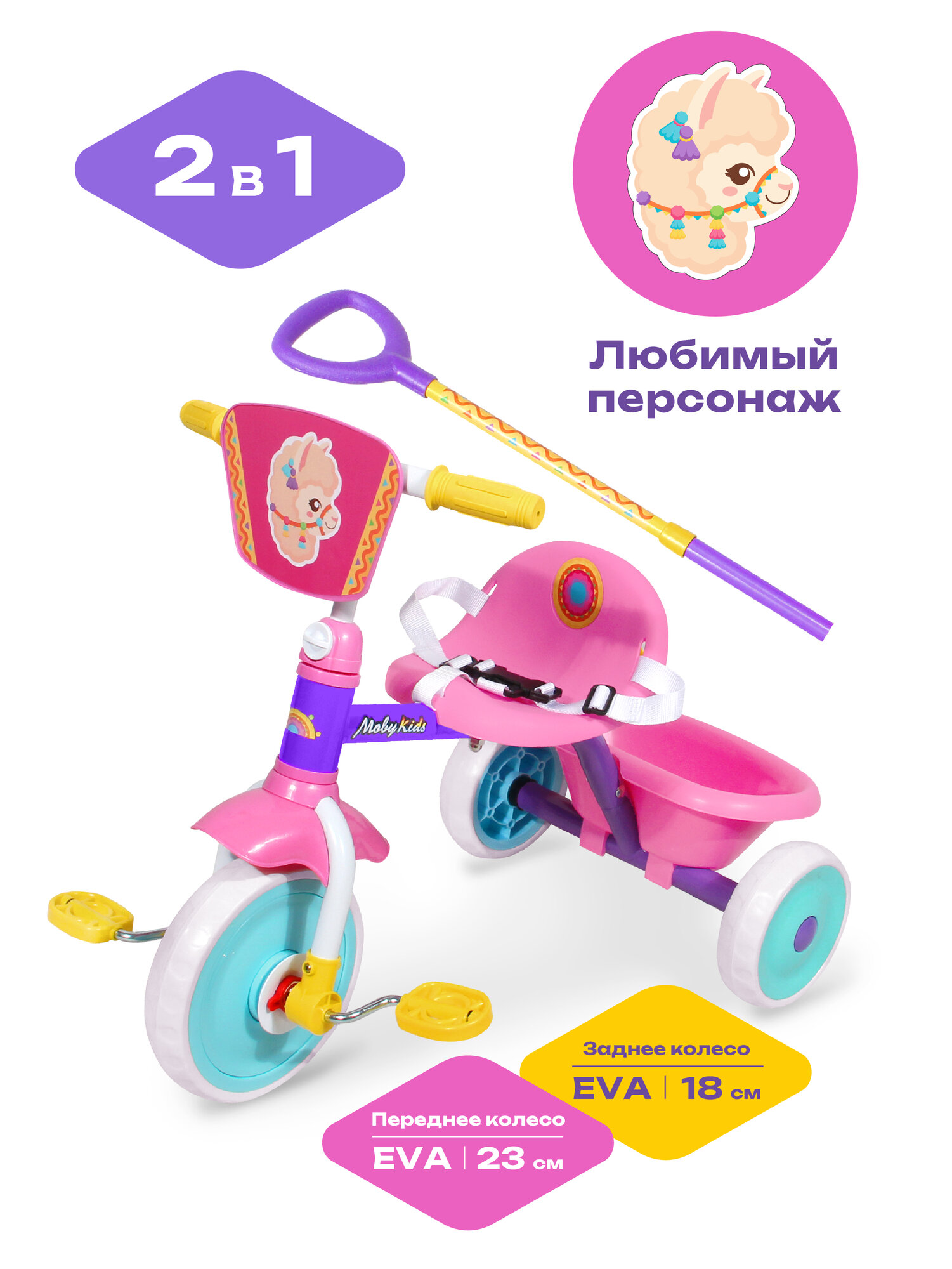 Велосипед 3 кол. Moby Kids Альпака, 9/7 кол. EVA, розовый. интересное:
