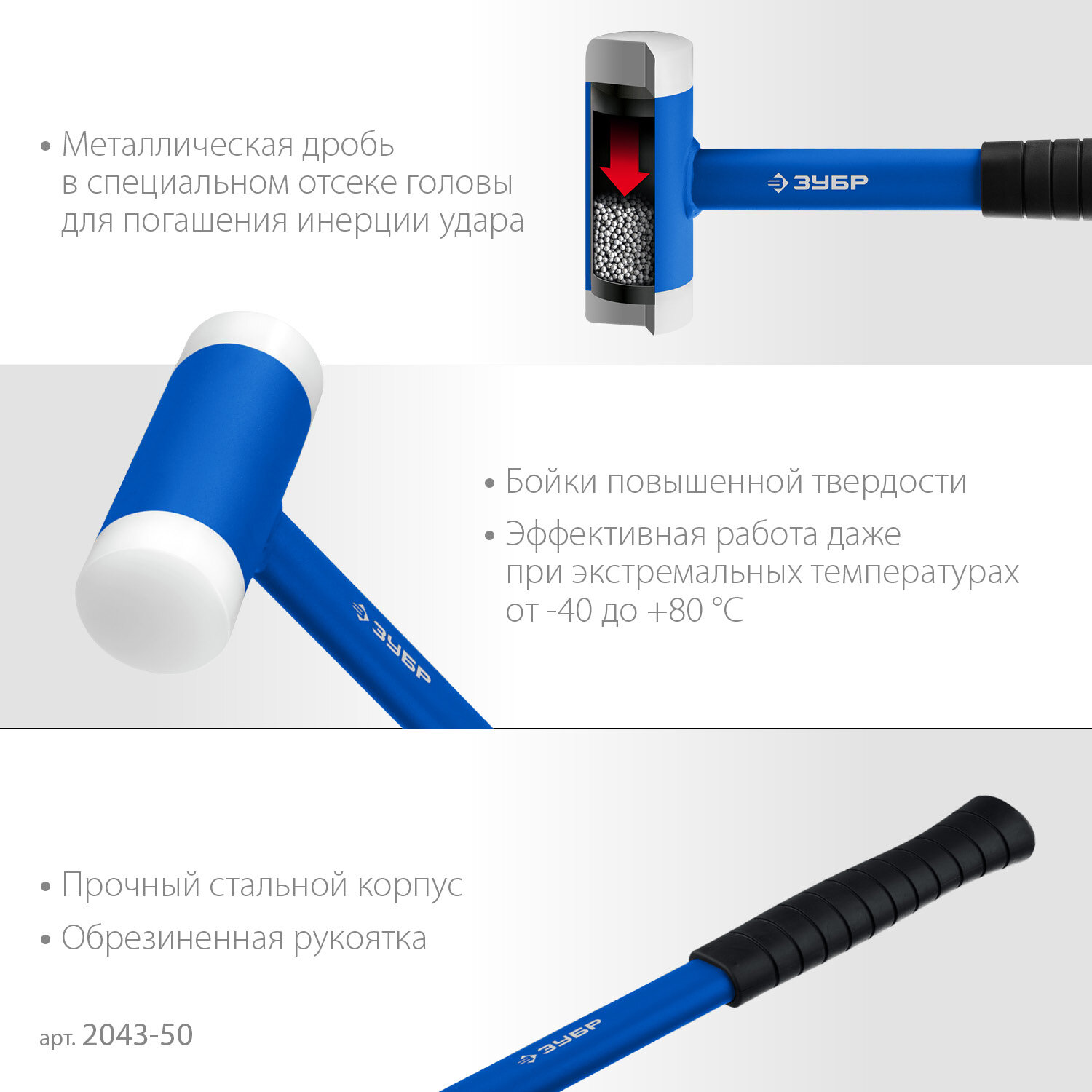 ЗУБР БМП, 900 г, 50 мм, Безынерционный молоток с полиамидными бойками (2043-50)
