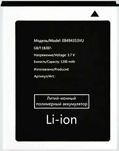 | Дополнительная информация | совместимые модели аккумуляторов: EB494353VU |