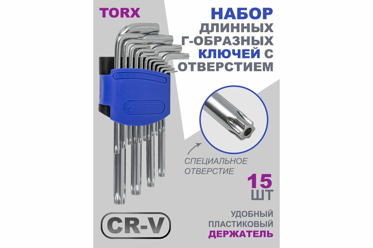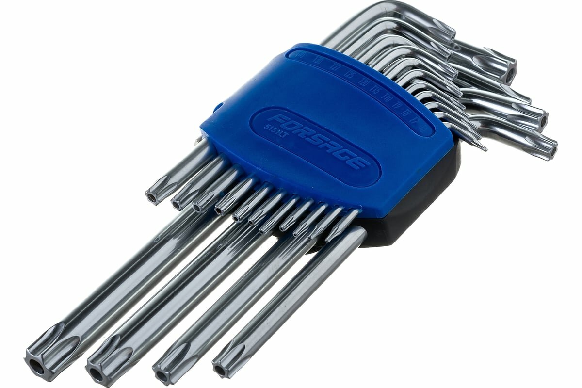 Набор ключей Г-образных TORX длинных, 15ипр.(Т6Н, T7H, T8H, T9H, Т10Н, Т15Н, Т20Н, Т25Н, Т27Н, Т30Н, Т40Н, Т45Н, Т50Н, Т55Н, Т60Н с отверстием) Forsage F-5151LT