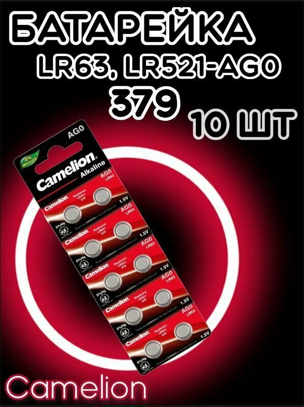 Купить Батарейка дисковая Camelion AG0/Элемент питания Камелион 379/Таблетка для часов алкалиновая Хамелеон LR63(10шт)