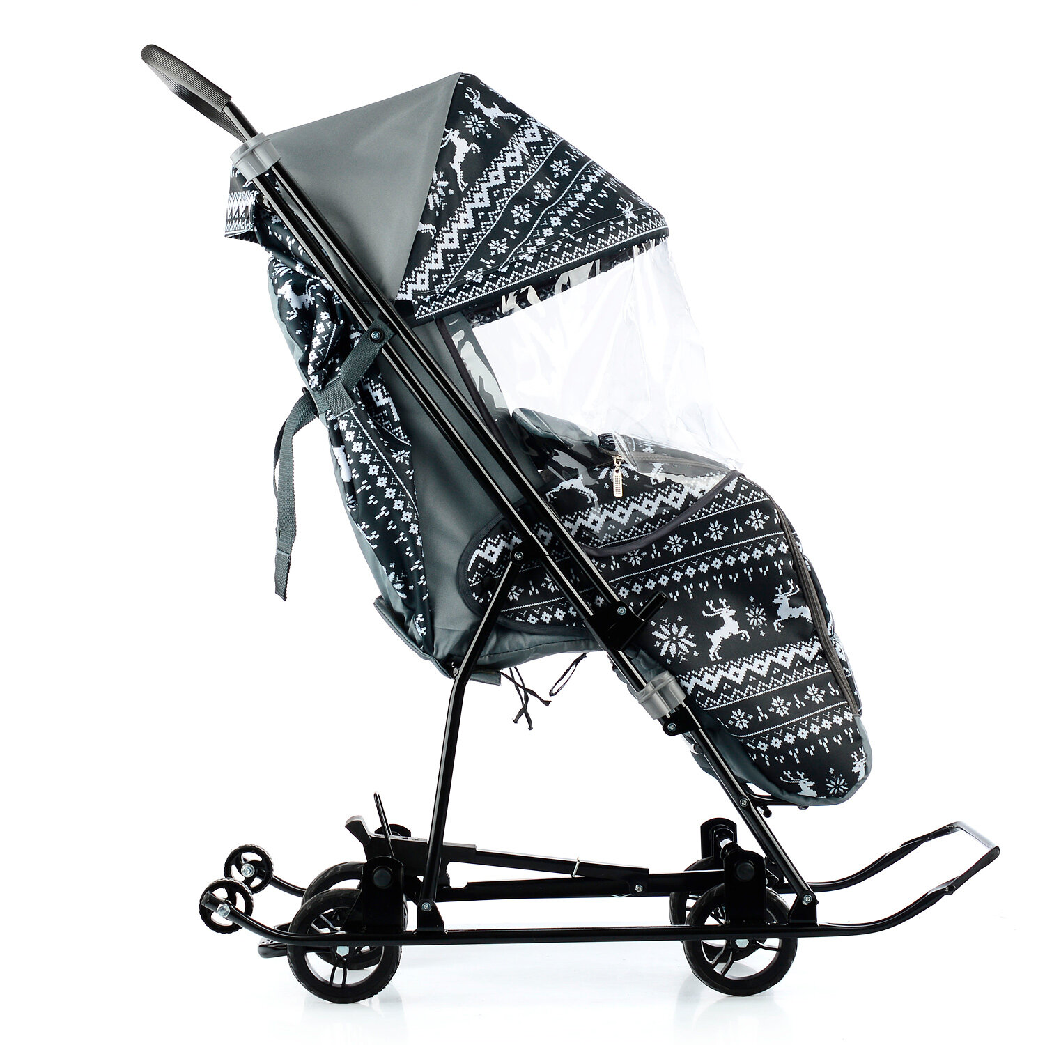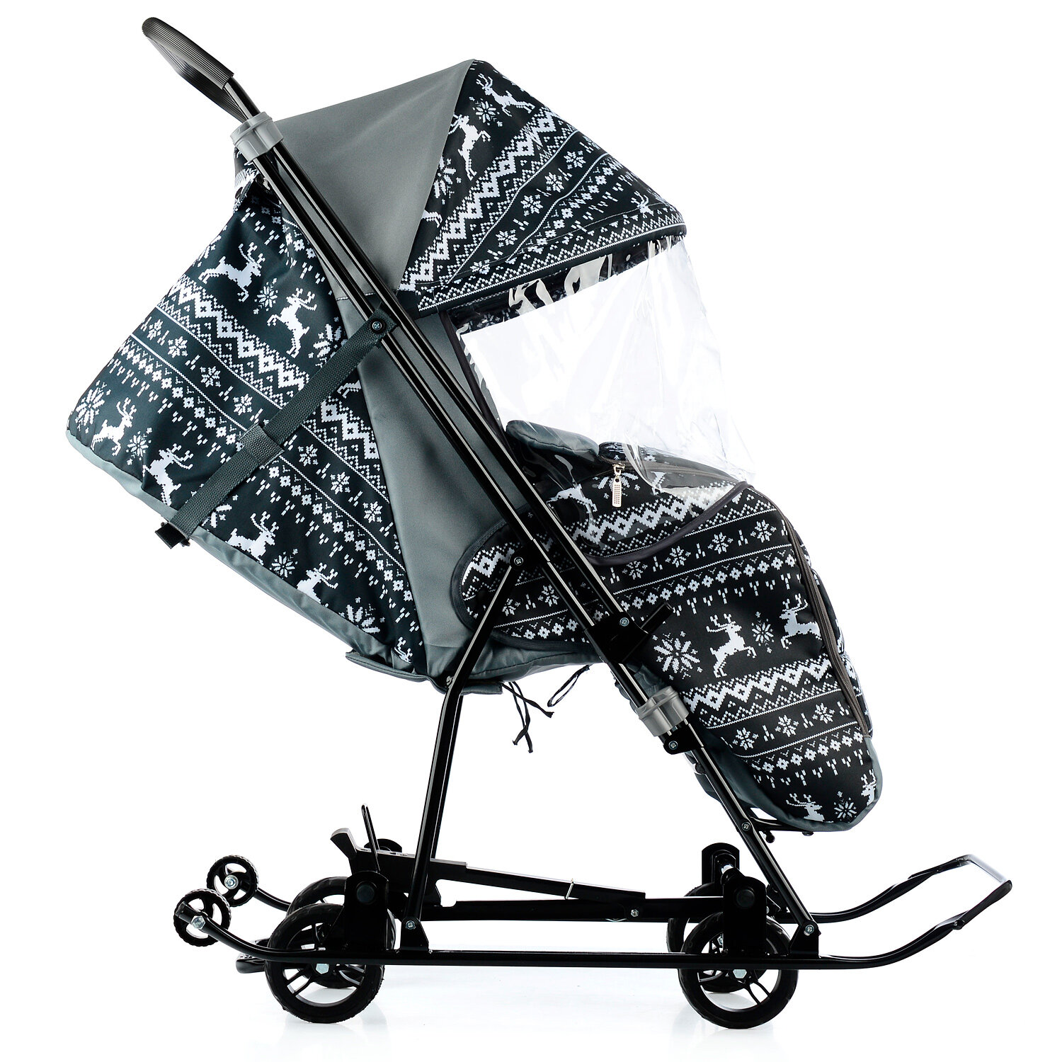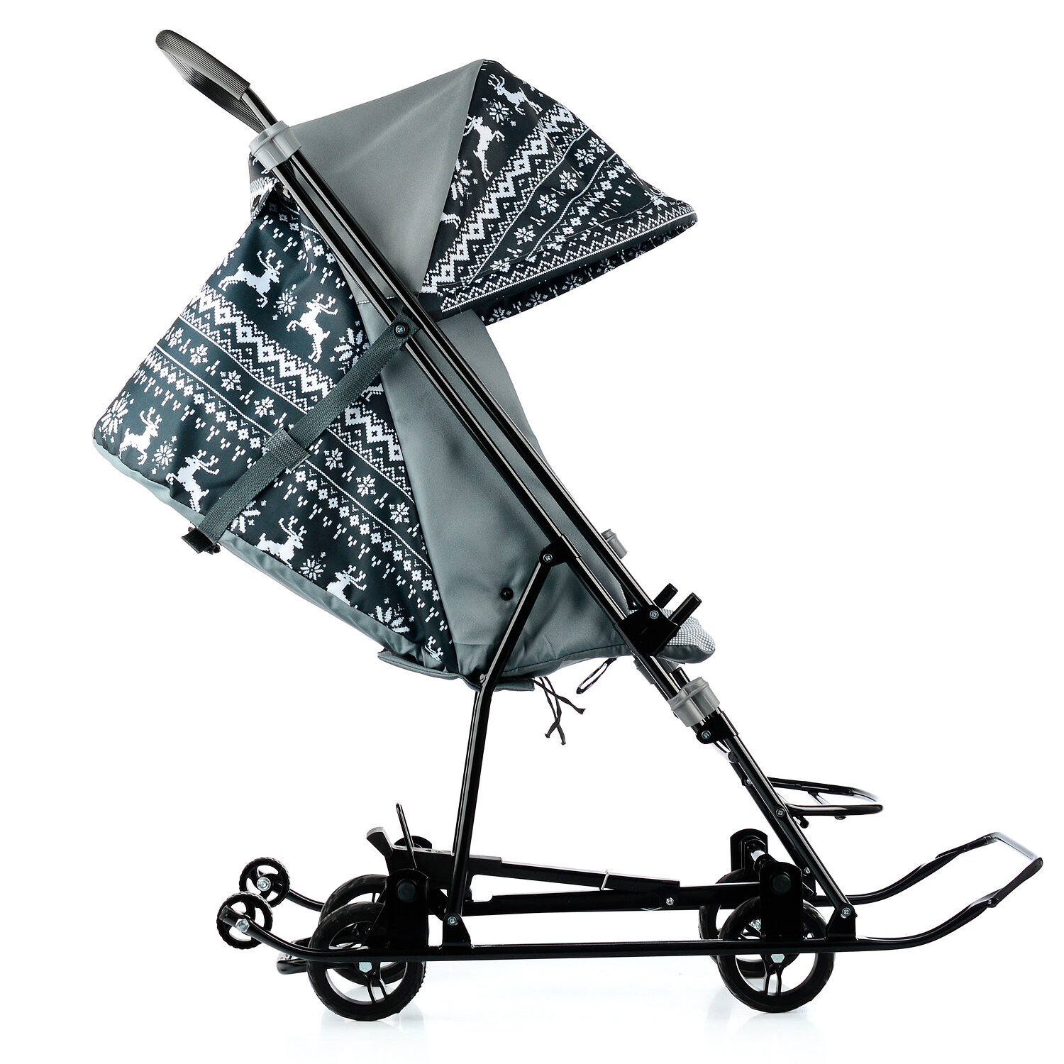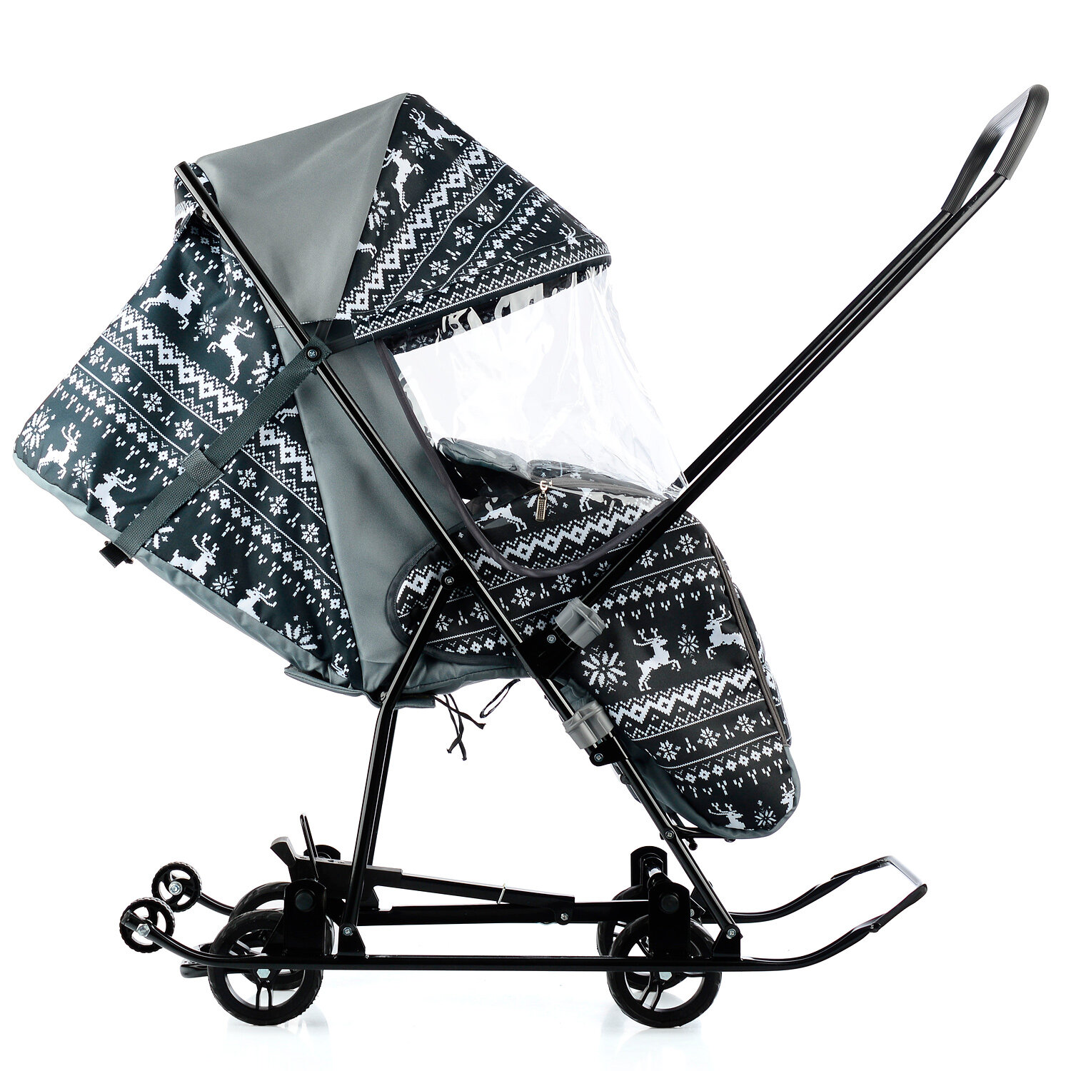 Санки-коляска Снежинка универсал-1 (олени на черном)