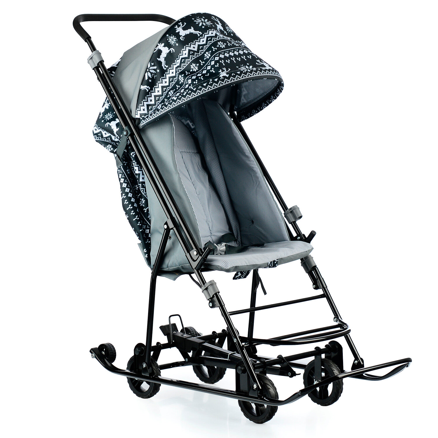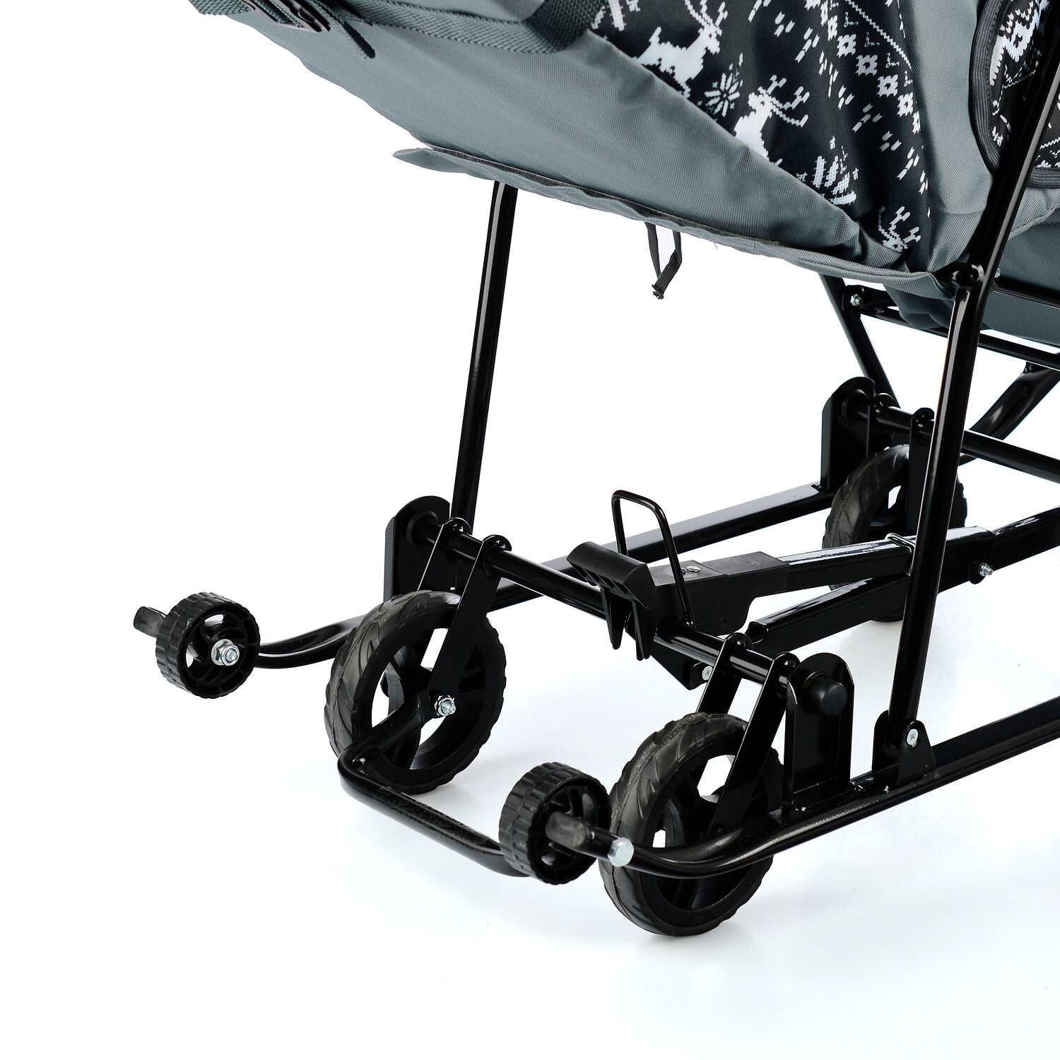 Санки-коляска детские с выдвижными колесами GALAXY Снежинка универсал-1 (олени на черном) интересное: