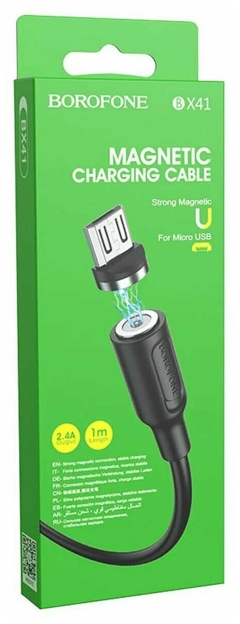 Кабель Borofone BX41, microUSB - USB, магнитный, 2.4 А, 1 м, PVC оплётка, чёрный