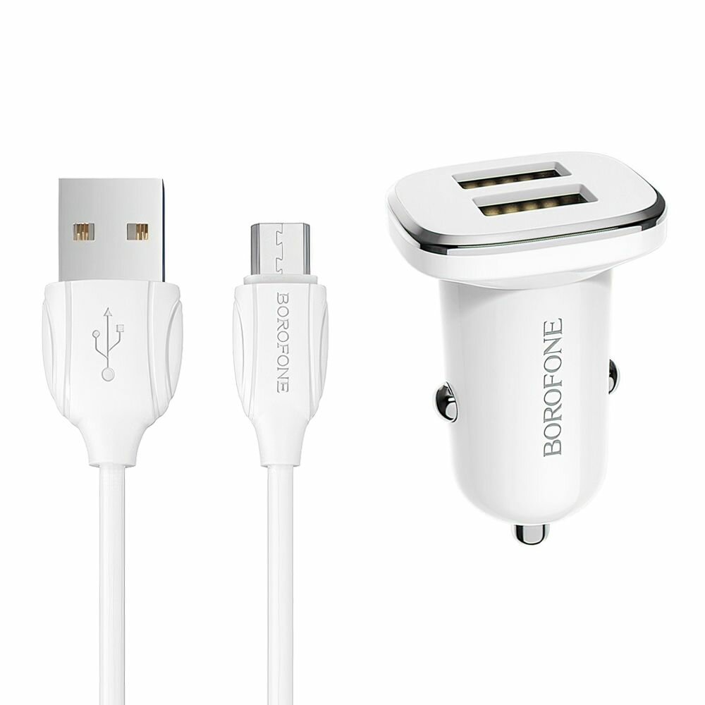 Автомобильное зарядное устройство Borofone BZ12 + кабель micro-USB, белый