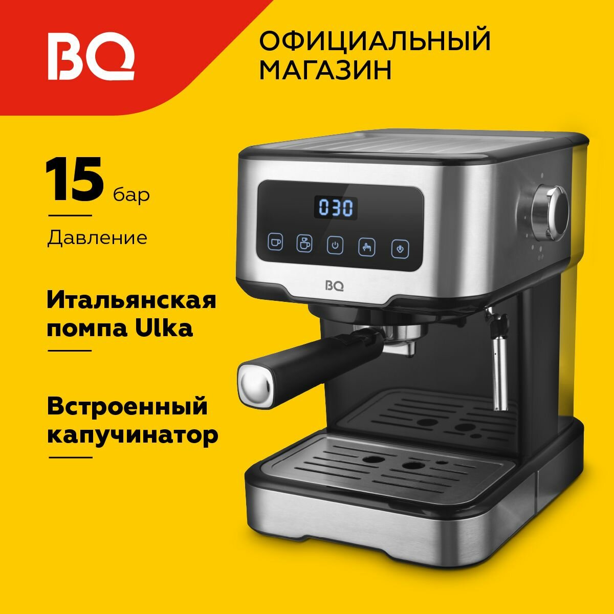 Кофеварка рожковая с капучинатором BQ CM2000 Черно-серебристая с подогревом чашек / 850 Вт / 15 бар / 1,6л