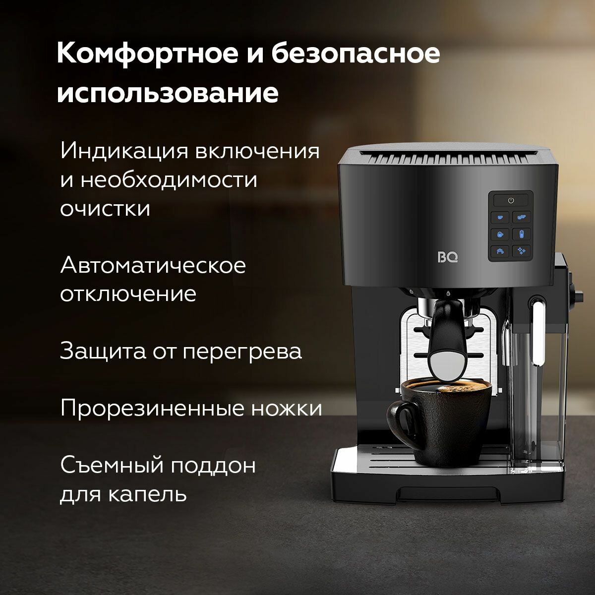 Купить Кофеварка рожковая с капучинатором BQ CM9002 Черная / 1450 Вт / 19 бар / 1,4л