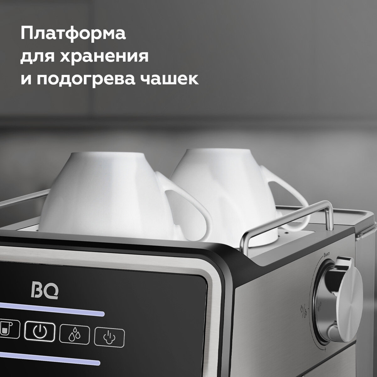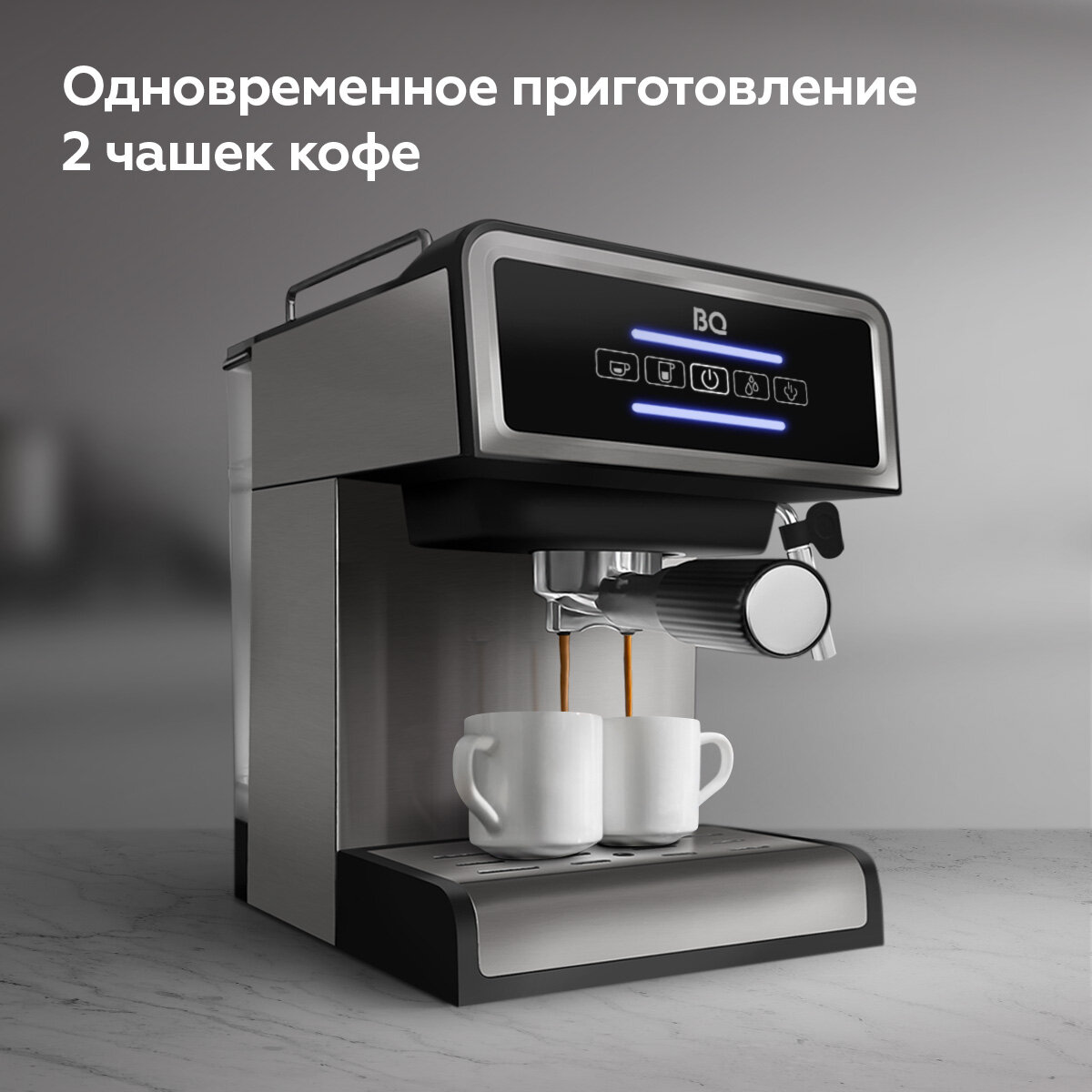 Кофеварка рожковая с капучинатором BQ CM9000 Steel-Black с подогревом чашек / 1100 Вт / 15 бар / 1,5л