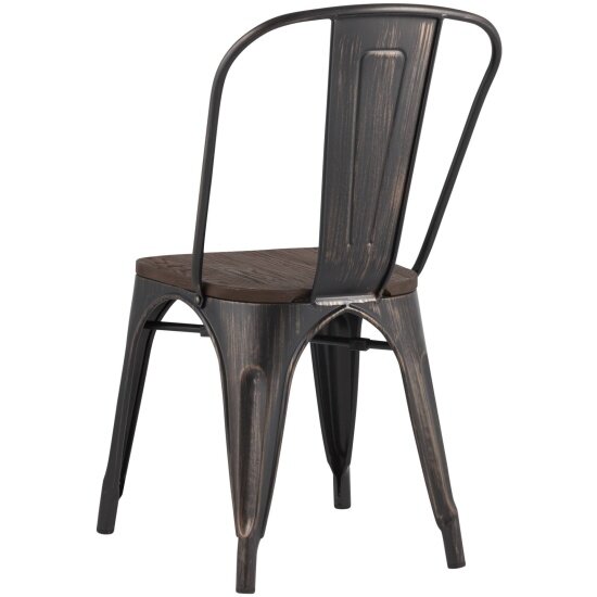Стул TOLIX черный/патина золото + темное дерево (комплект 6 шт)