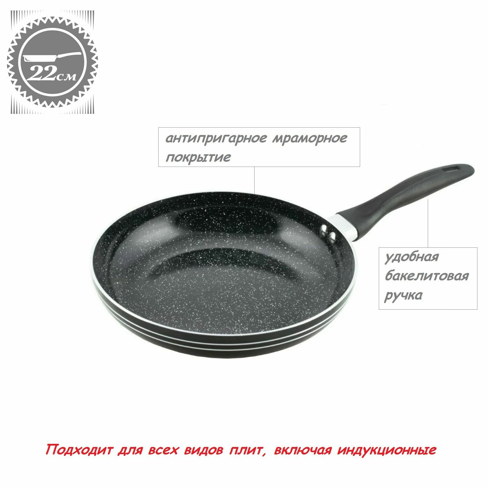 Сковорода Edenberg с антипригарным 3х слойным мраморным покрытием для всех типов плит 22см