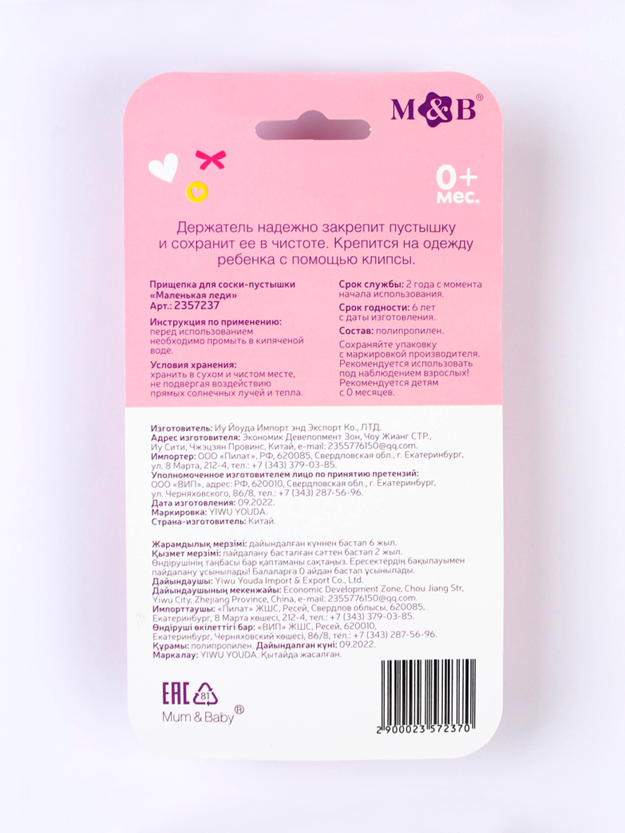 СохранитьДержатель для пустышки "Маленькая леди", на цепочке, цвет розовый интересное: