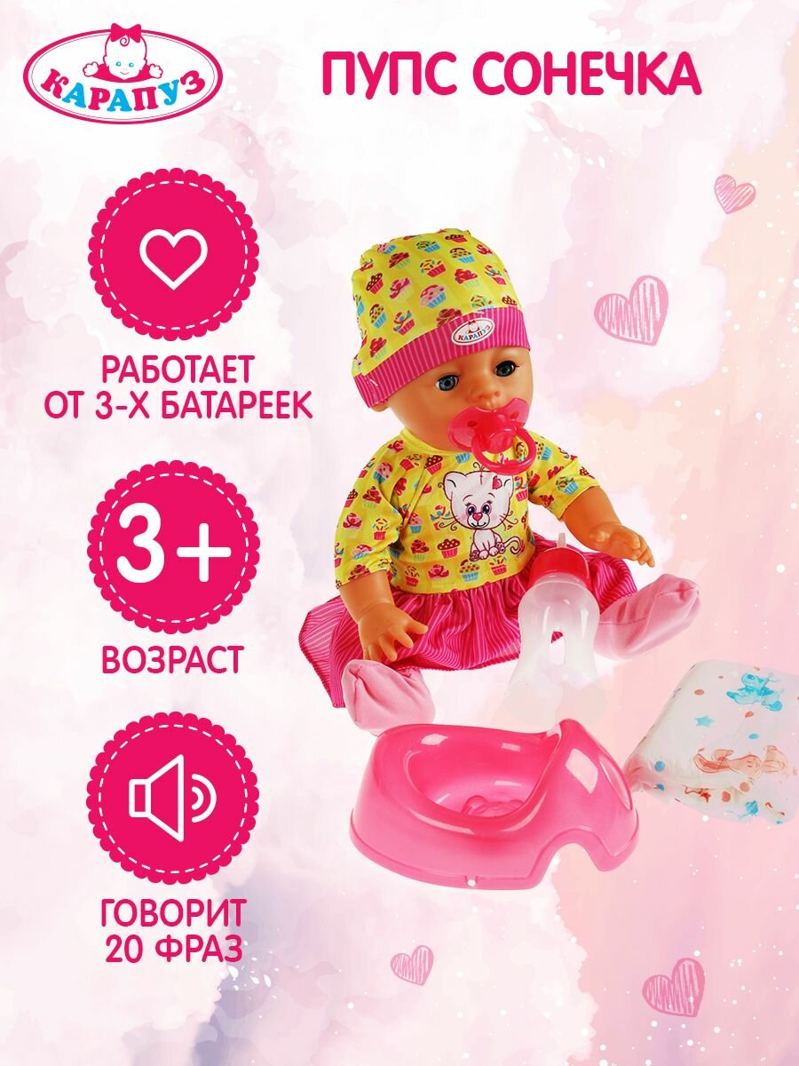 Пупс, Карапуз Кукла Сонечка Карапуз говорящий функциональный с аксессуарами 35 см
