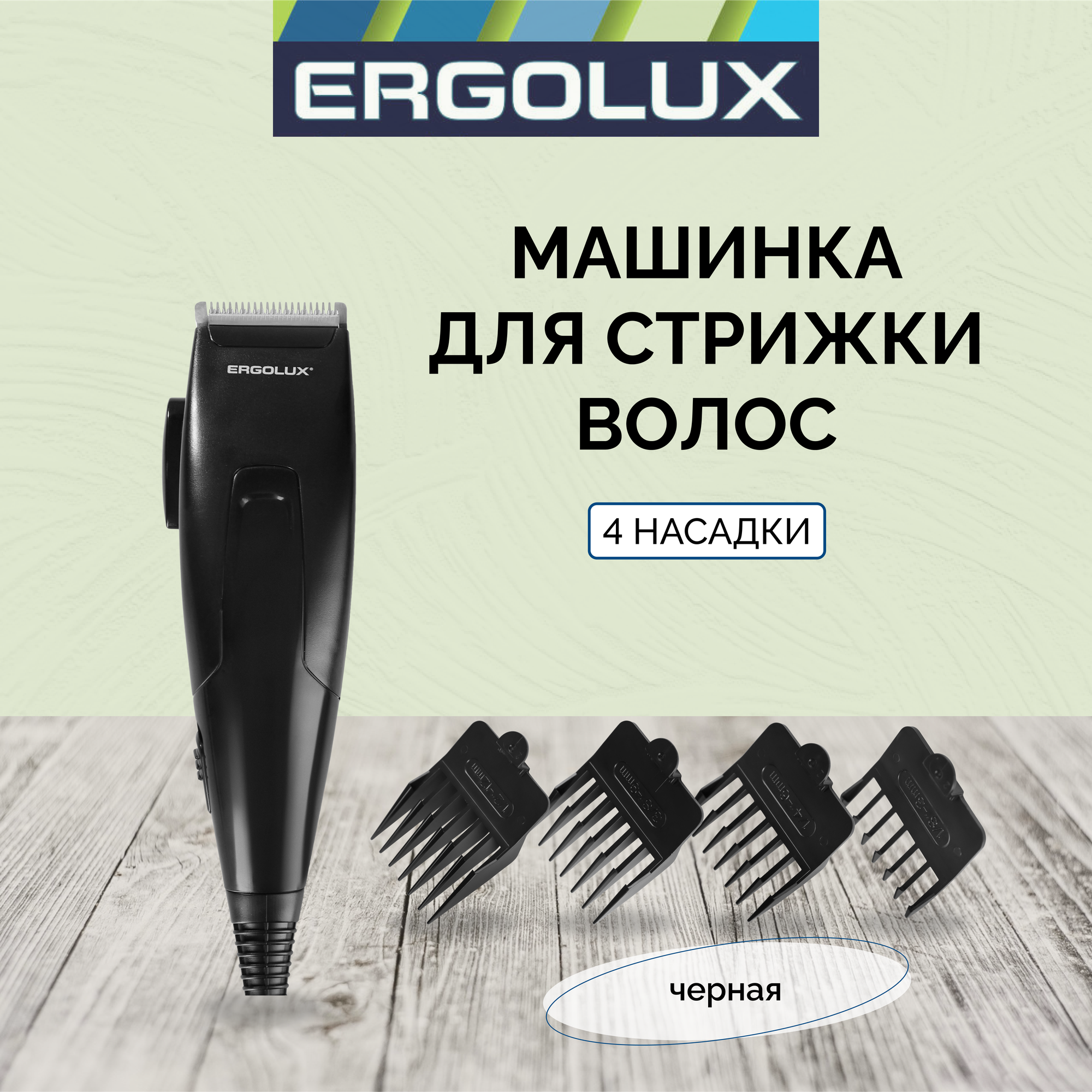 Машинка для стрижки Ergolux - ELX-HC01-C48, 4 насадки, черная, 1 комплект