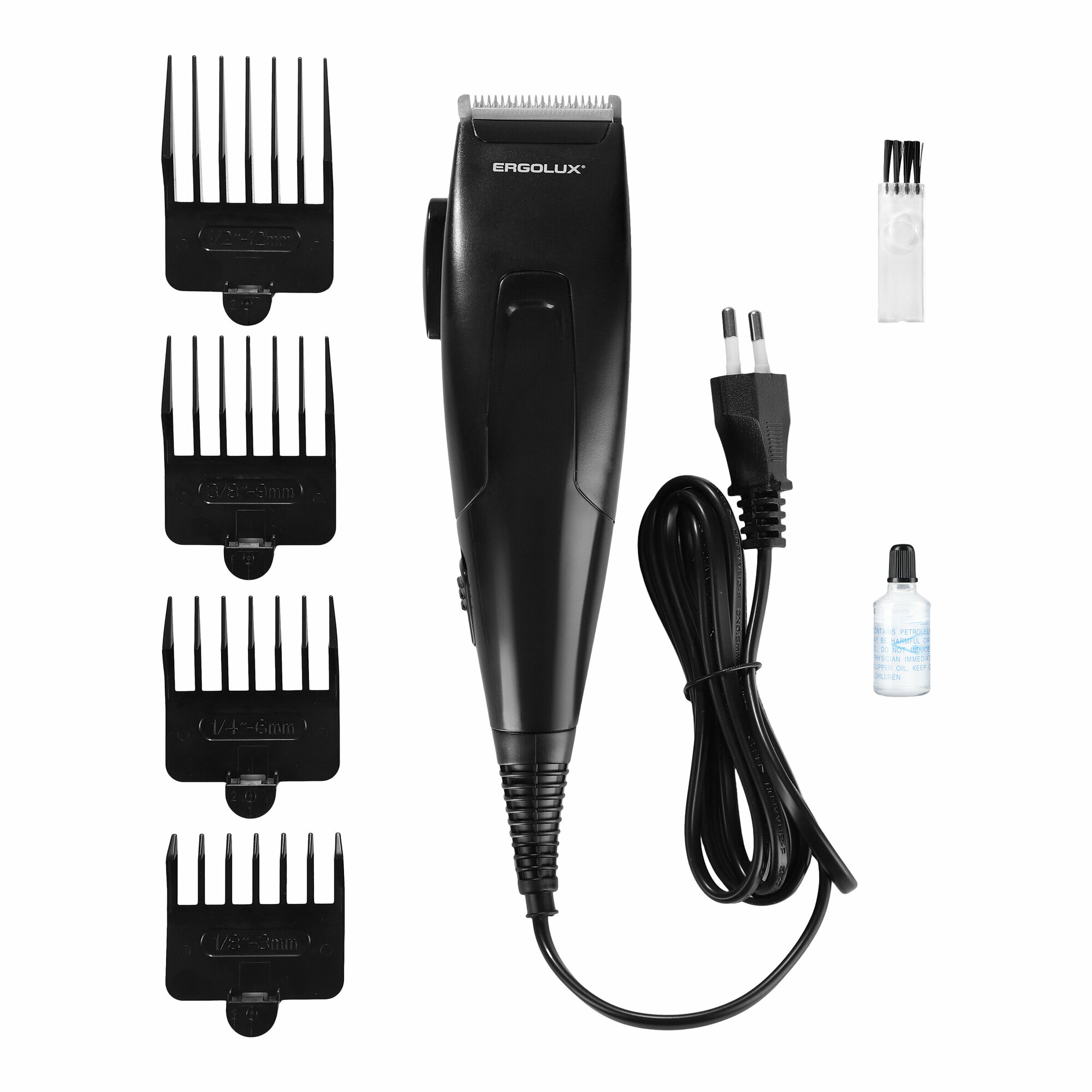 Машинка для стрижки волос ERGOLUX ELX-HC01-C48 15W, 4 насадки, щетка+смазка, 220-240V черный 81736