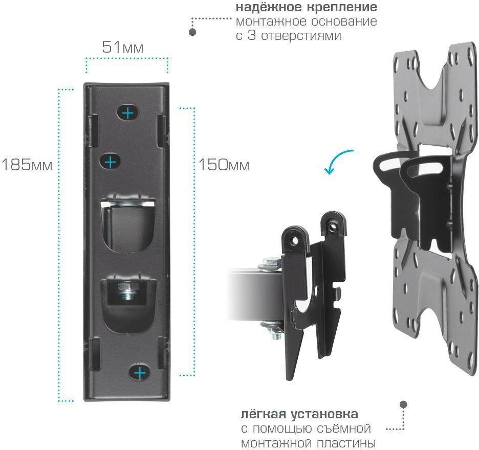 Кронштейн Kromax OPTIMA-413 серый 20-55 макс.30кг настенный поворотно-выдвижной и наклон