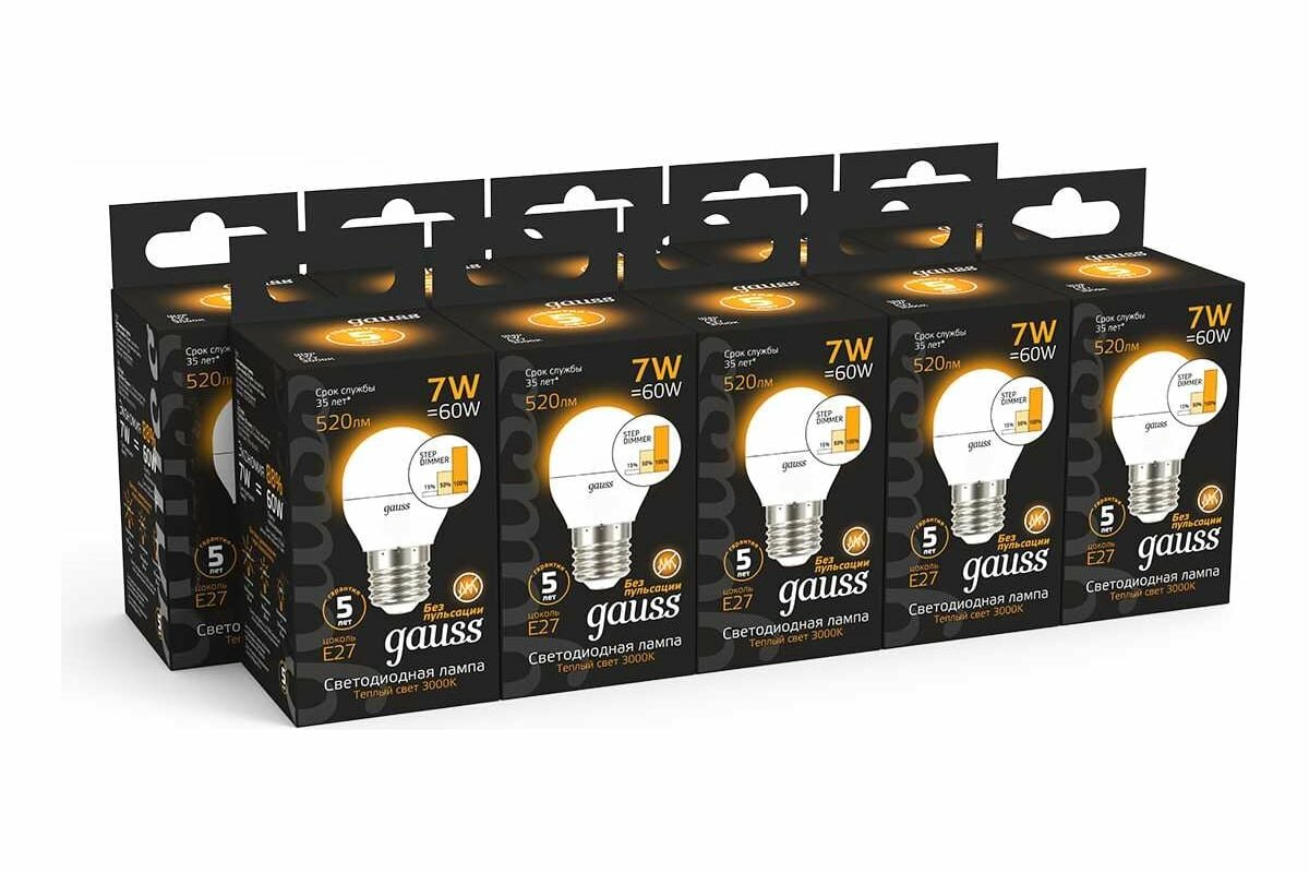 Gauss Лампа светодиодная шар E27 7W 3000K пошаговое диммирование Gauss 105102107-S