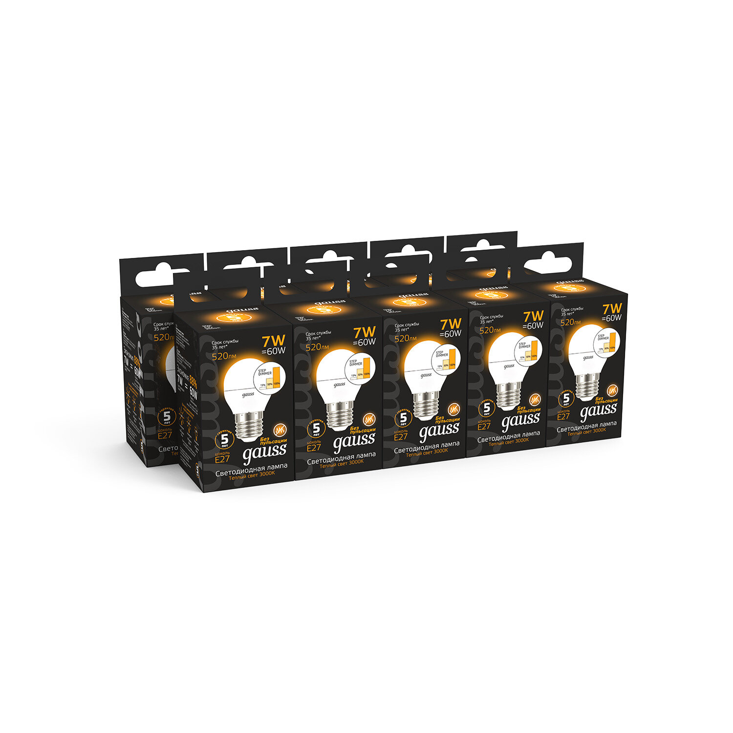 10 штук Лампа светодиодная Gauss Globe E27 7Вт 3000К