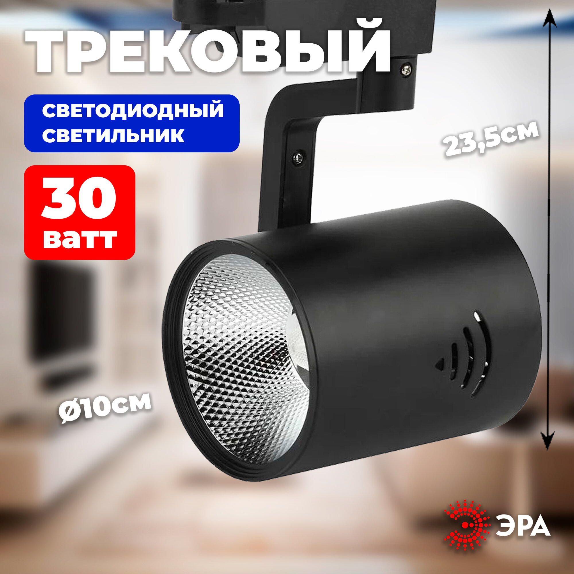СохранитьТрековый светильник однофазный ЭРА TR1 - 30 BK 30Вт черный COB интересное: