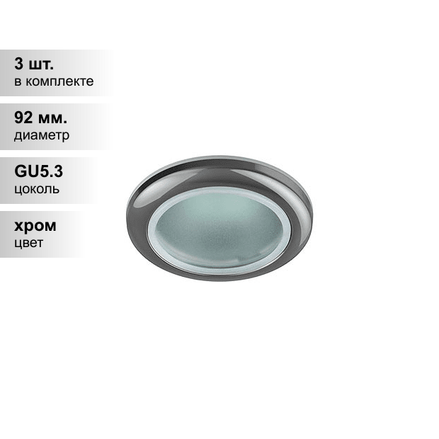 Сохранить(3 шт.) Влагозащищенный встраиваемый светильник ЭРА WR1 CH, для ламп с цоколем GU5.3, тип ламп MR16, макс. 50 Вт, напряжение 12 В, хром, матовое влагозащищенное стекло, размер 92x33мм, врезное отверстие 70мм интересное: