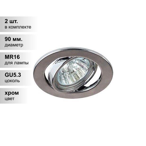 Сохранить(2 шт.) Светильник точечный поворотный ЭРА ST2A CH, цоколь GU5.3, тип лампы MR16, напряжение 12 В, максимальная мощность лампы 50 Вт, ширина 90 мм, диаметр отверстия 70 мм, штампованная сталь, цвет хром интересное: