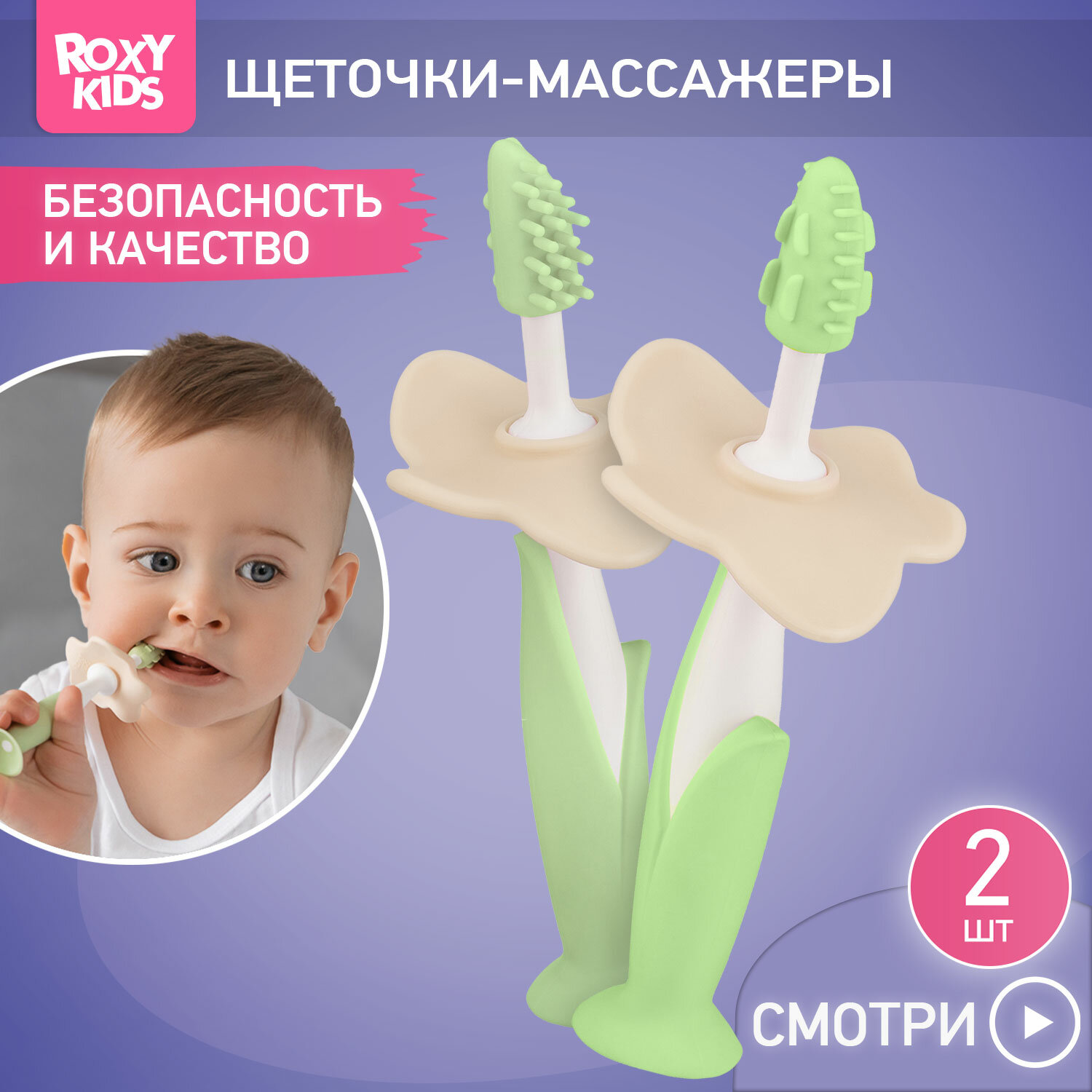 ROXY-KIDS Щетки детские зубные массажер для десен FLOWER от ROXY-KIDS 2 шт, цвет мятный