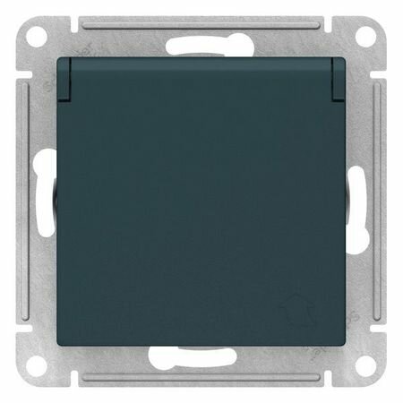 ATLASDESIGN Розетка с зазем. со шторками с крышкой, 16А, IP20, механизм, изумруд Schneider Electric ATN000846