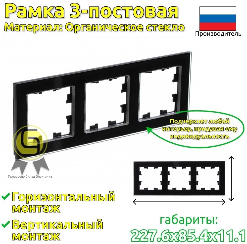 Рамка 3-м AtlasDesign Nature мат. стекло черн. SchE ATN331003