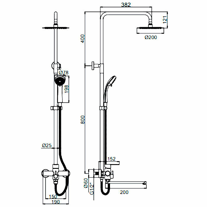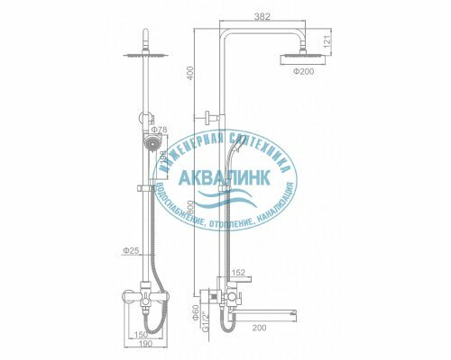 | Дополнительная информация | минимальная высота стойки 80 см, максимальная высота стойки 120 см, размер верхнего душа 20 см, вылет верхнего душа 38.2 см |