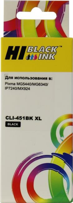 Картридж Hi-Black HB-CLI-451XLBK, совместимый, черный, 5565 страниц, для Canon Pixma iP7240 / iP8740 / iX6840 Photo / MG5440 / MG5540 / MG5640 / MG6340 / MX924