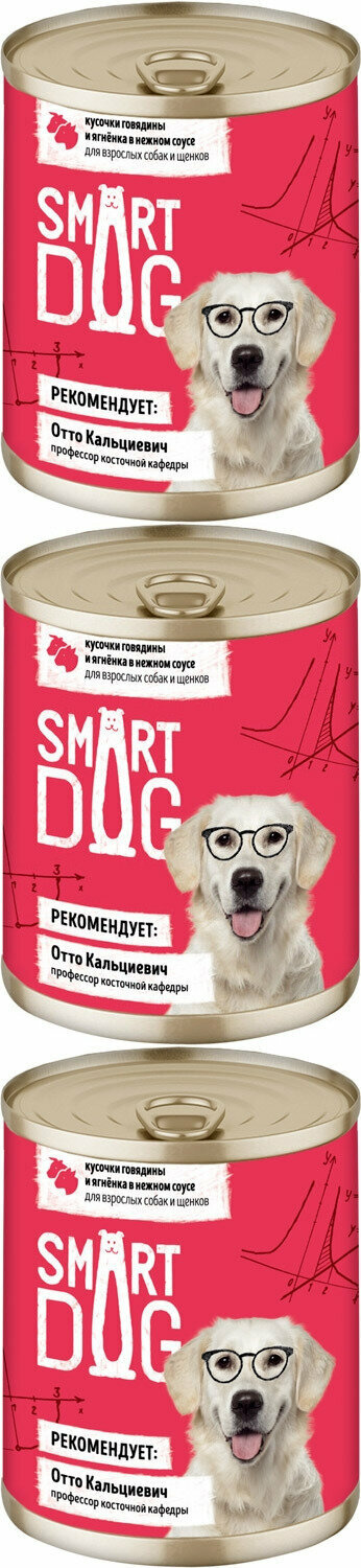 Купить Smart Dog (Смарт Дог) Консервы для взрослых собак и щенков кусочки говядины и ягненка в нежном соусе, 3 шт по 240г