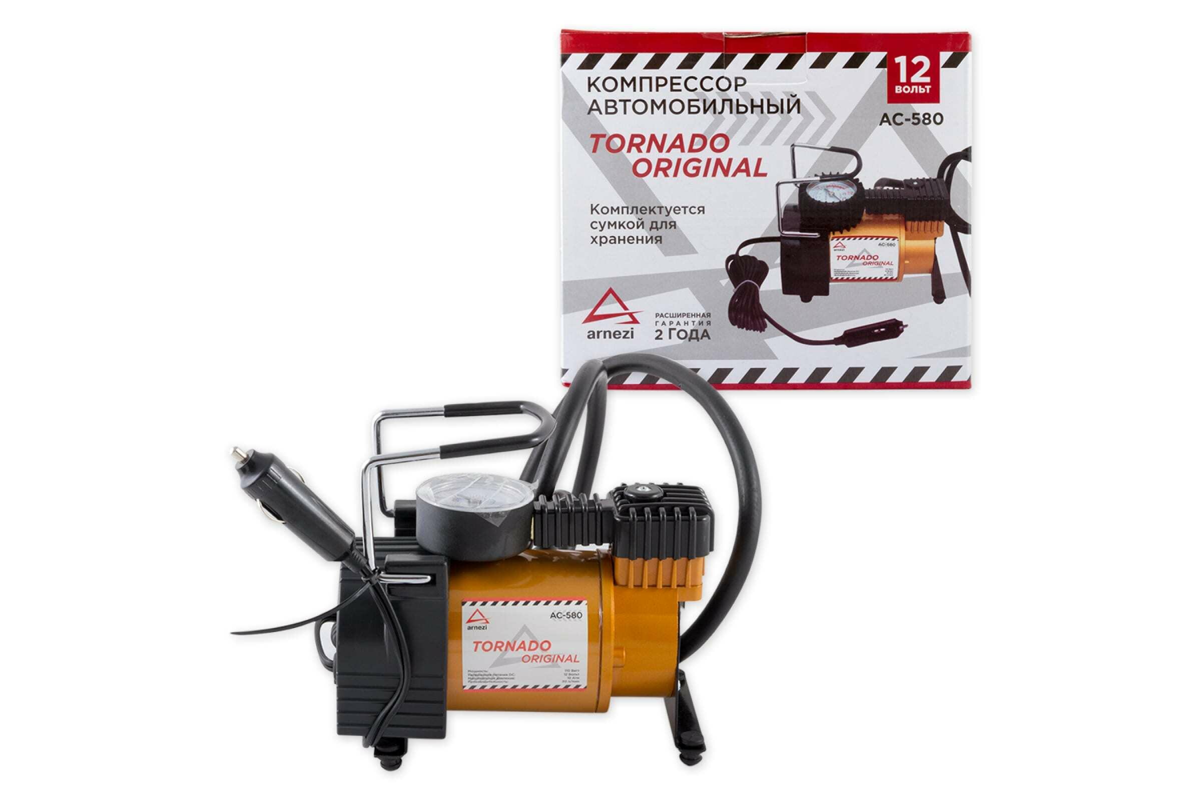 ARNEZI Компрессор автомобильный 10Атм 30л/м 110Вт 10А ARNEZI TORNADO AC580 ORIGINAL 1шт