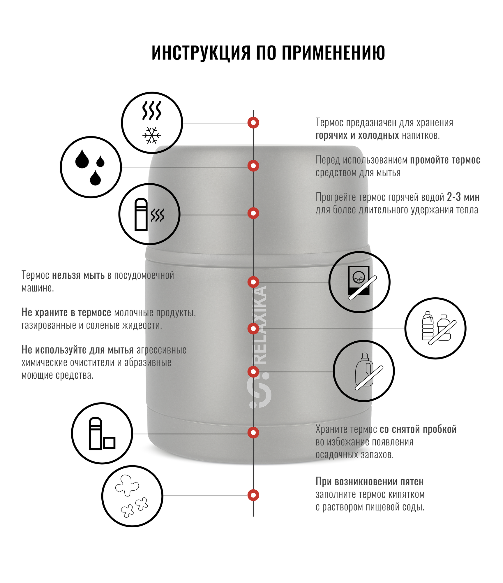 Термос для еды Relaxika R301.500.2 500мл, нержавеющая сталь