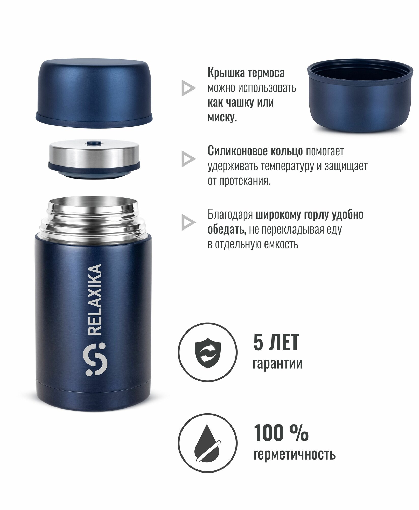 Термос Релаксика Relaxika с широким горлом для еды (0,7 литра), темно-синий, R301.700.3