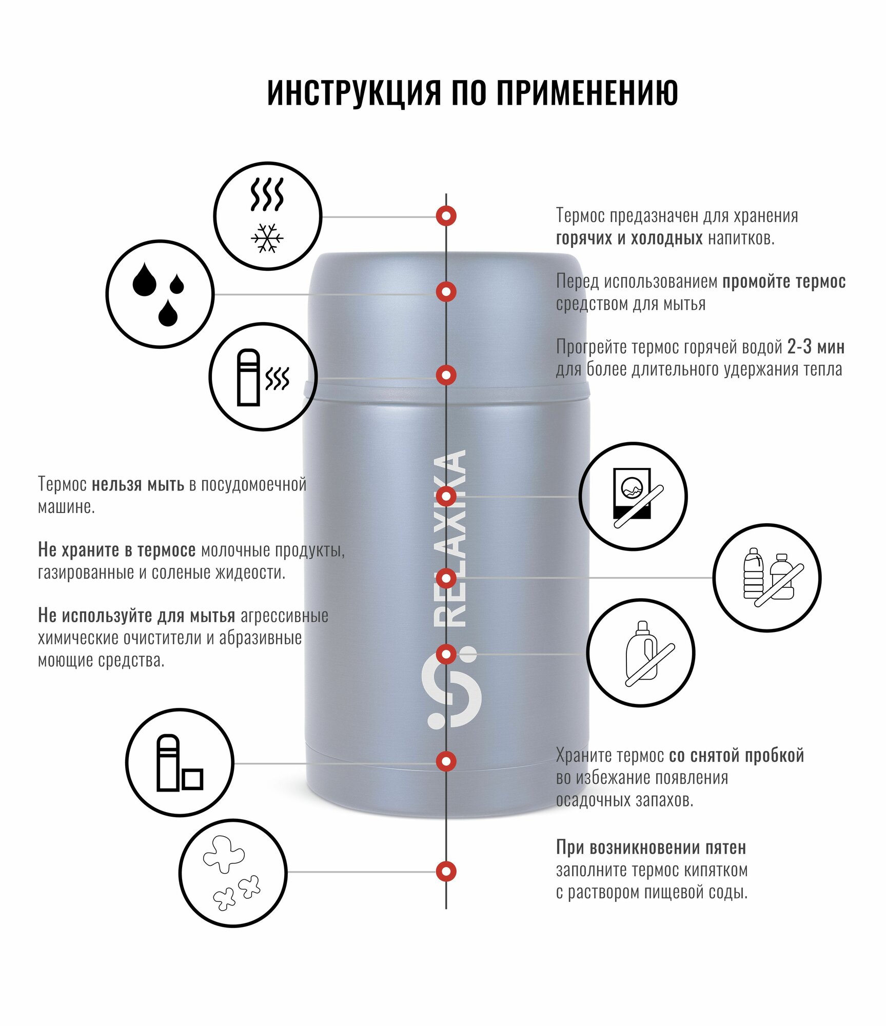 Термос универсальный (для еды и напитков) Relaxika R201.800.1 (0,8литра), стальной