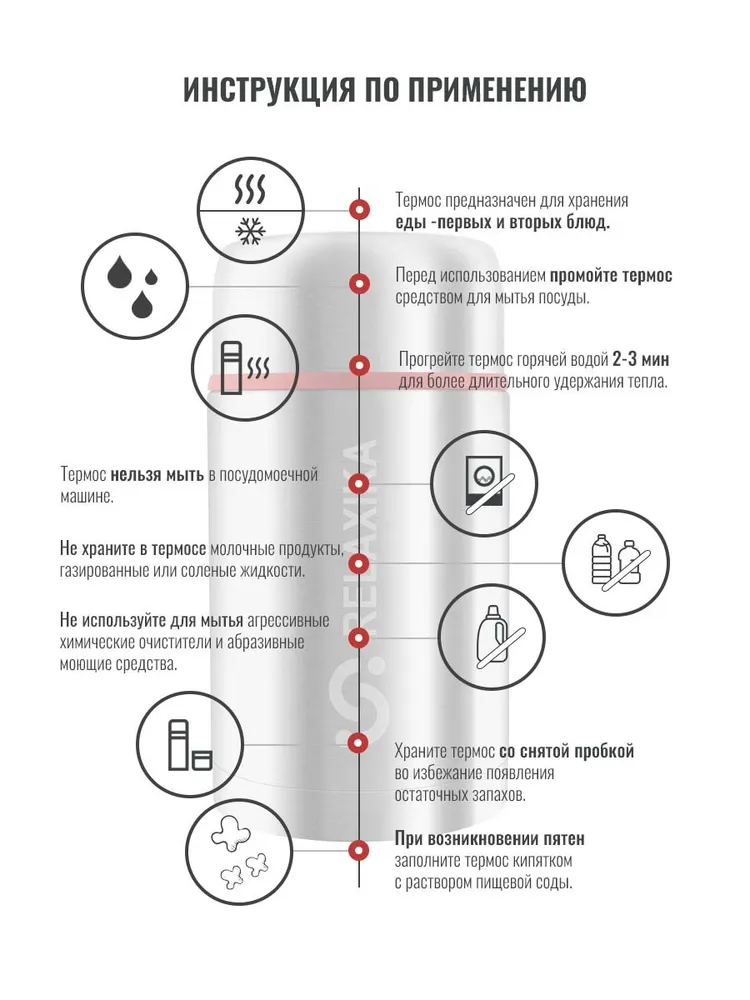 Термос для еды Relaxika R301.500.2 500мл, нержавеющая сталь
