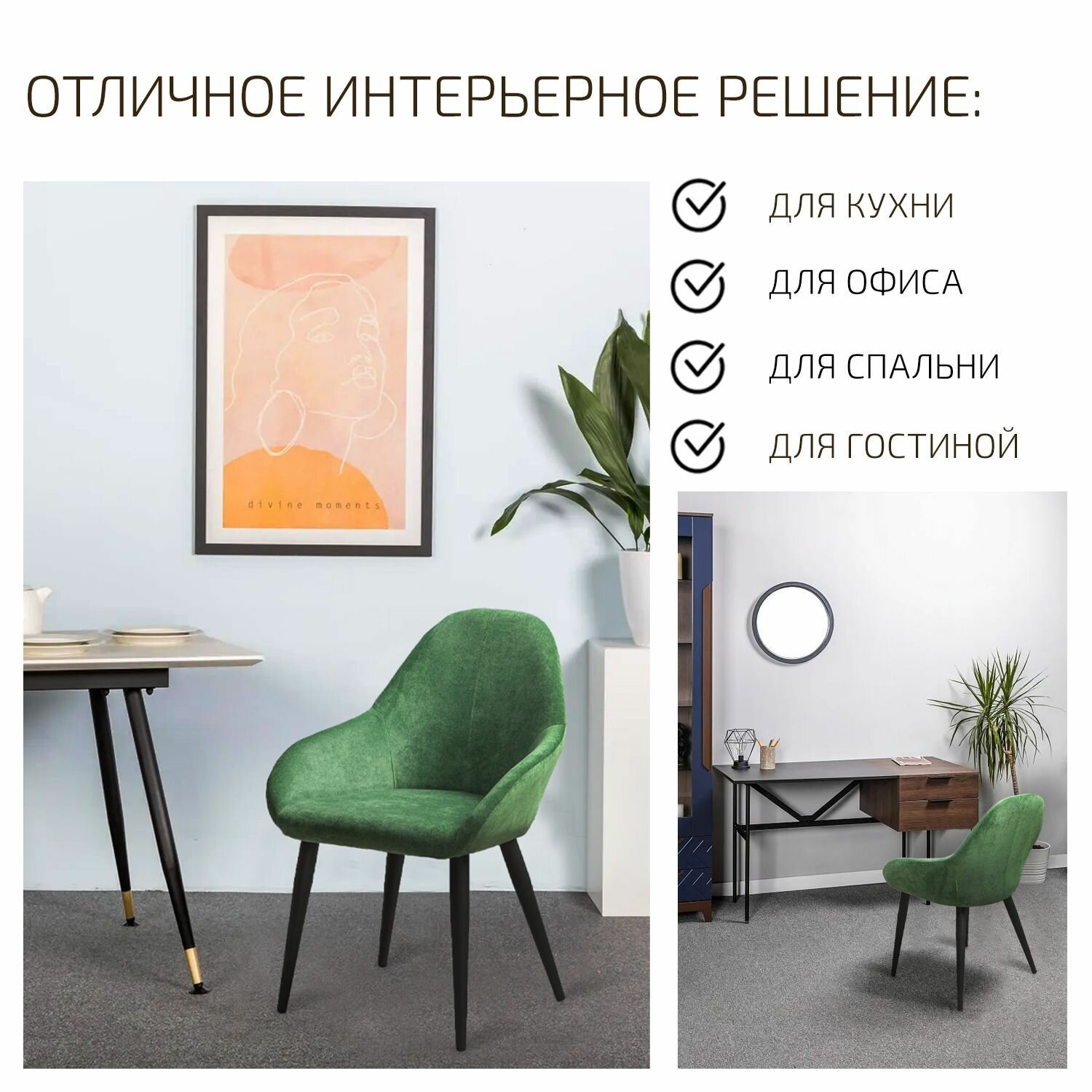 Кресло Kenya Грин цвет ножек Чёрный интересное: