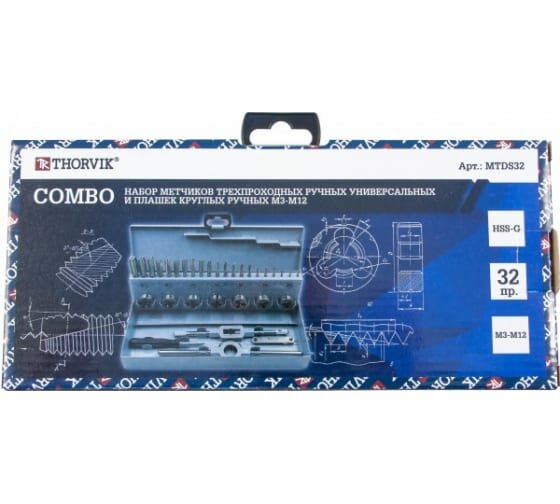 Купить Thorvik Набор метчиков и плашек М3-М12, HSS-G, 32 предмета, трехпроходные универсальные серия COMBO MTDS32 Thorvik
